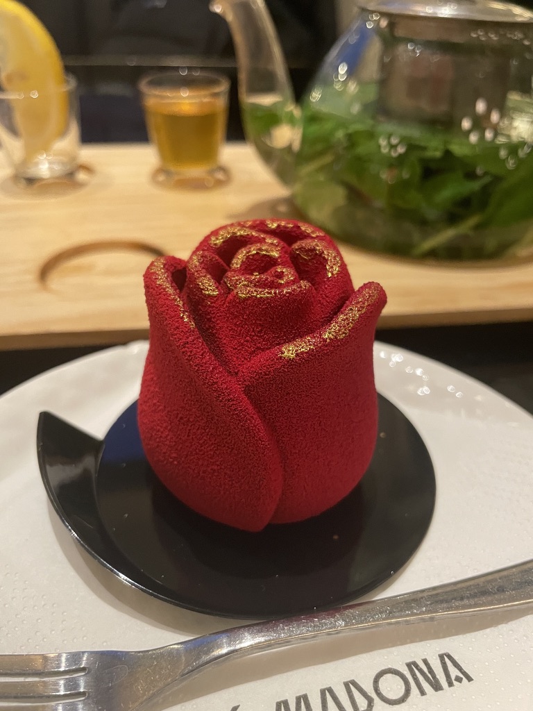 薔薇の形をしたスイーツがなんとも芸術的です。