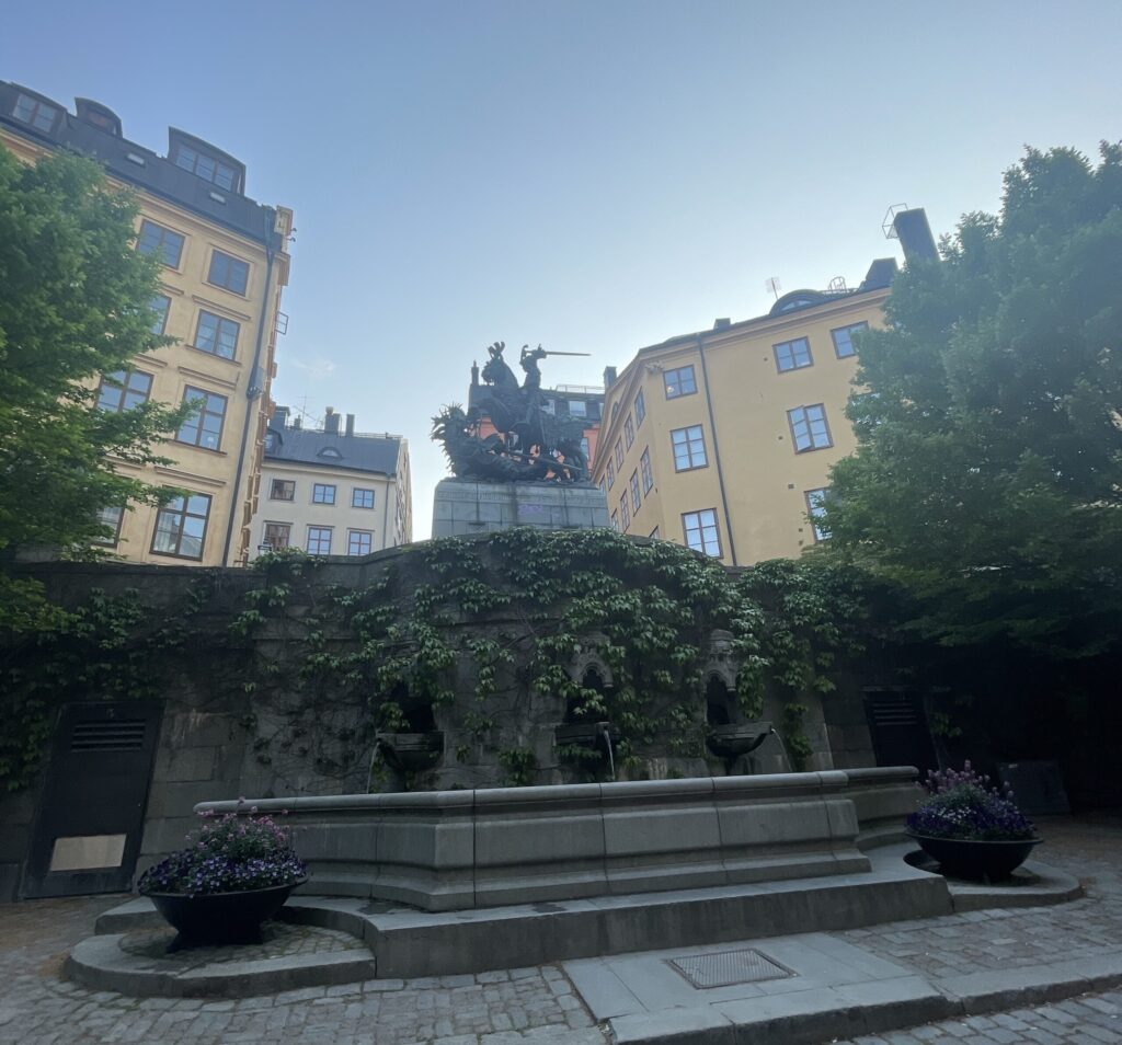 宮崎駿の『魔女の宅急便』その舞台となった街はヨーロッパ中に点在しておりますが、その一つがストックホルムの歴史地区『ガムラスタン』です。幸運にも今回の宿泊場所となるホステルから歩いて1分のところに、ジブリファンを感動させる噴水があります。