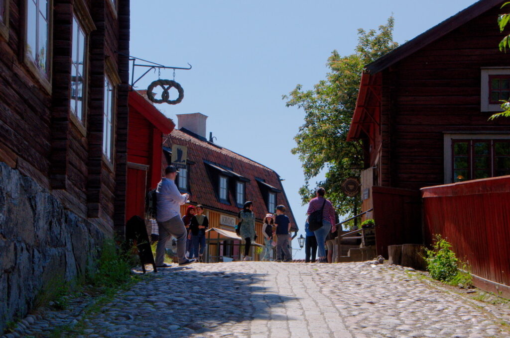 スウェーデンの首都ストックホルムの大きな部分は幾つもの島が集合した群島です。その一つ、ユールゴーデン島にスカンセン(Skansen)という博物館があります。スカンセンは世界初の野外博物館で、工業化前のスウェーデンの暮らしを再現するととともに、動物園や水族館なども備えています。中でも最も見どころなのが工房町です。