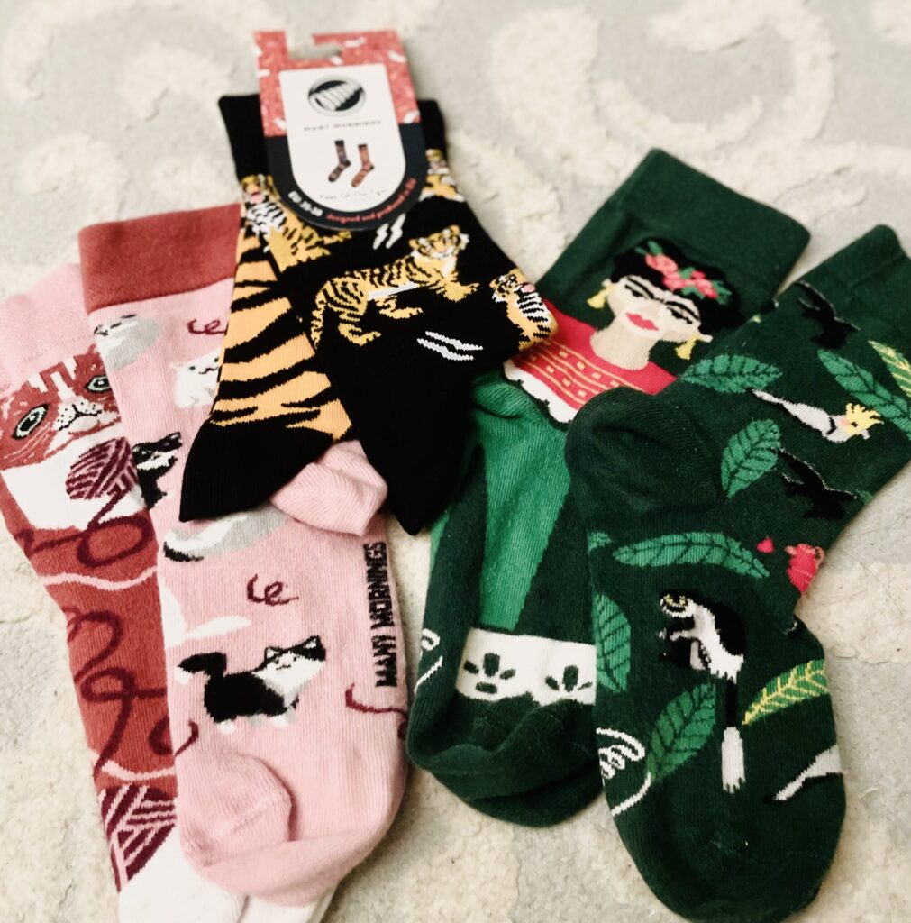 ウッチ(Lodz)近くにあるアレクサンドルフ・ウツキは昔から靴下作りが盛んな町だそうですが、そのブランドの1つがメニーモーニングスです。左右非対称の柄が特徴で、ユニーク且つ、ポップで厚手な靴下です。