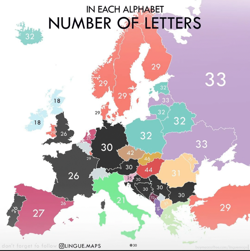 このような違いが生まれた理由を考えると、恐らく、ラテン文字を使う現在のヨーロッパの言語は一部を除いて翻字された言語体系だからでしょう。翻字というのは、まず口語があり、他の言語体系から輸入した文字を口語の発音に当てはめることを言いますが、イタリア語のような一部のラテン系長女格言語を除くヨーロッパの言語は翻字をするために、元あったラテン語の21文字に特殊な文字を足しただけでなく、組み合わせによって特殊な発音をするように、即ち文字単体の発音と単語としての発音の間に乖離が生まれたのです。